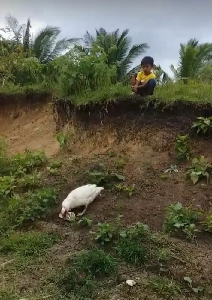 ไมลา อากีลา ( Myla Aguila ) ผู้ใช้เฟซบุ๊กจากจังหวัดเกซอน ประเทศฟิลิปปินส์ โพสต์คลิปที่เธอระบุว่าประหลาดใจอย่างมาก เมื่อได้เห็นเป็ดเลี้ยงตัวหนึ่งช่วยหนูน้อยคนหนึ่งเก็บรองเท้าที่ร่วงลงไปข้างทาง