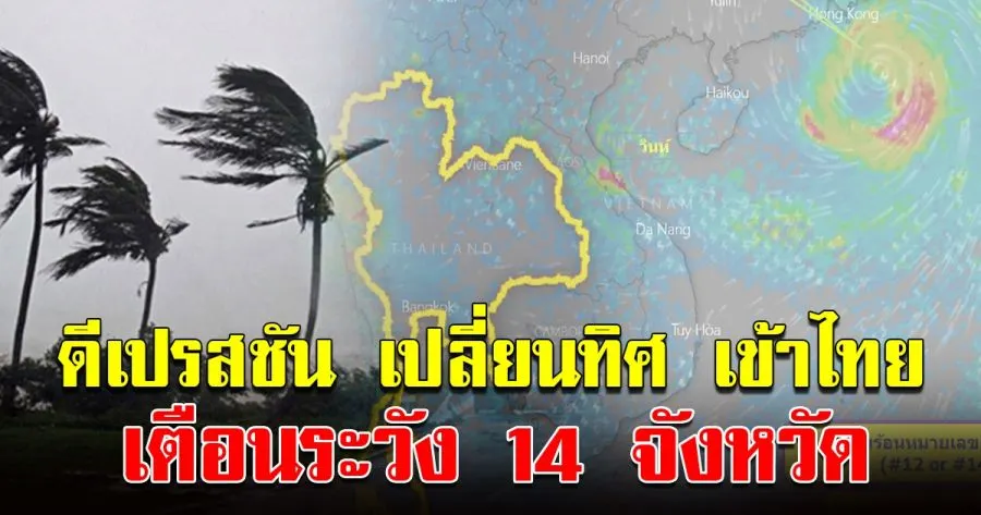 เตรียมรับมือ ดีเปรสชัน เปลี่ยนทิศ เข้าไทย เตือนระวังฝนตกหนัก 14 จังหวัด
