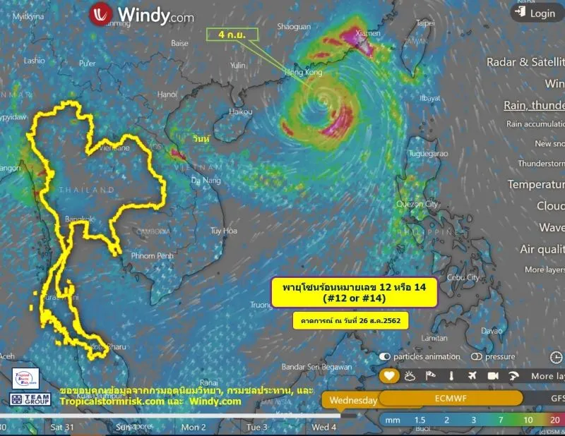 พายุดีเปรสชั่นจากแปซิฟิก จะมาถึงประเทศไทย คืนวันที่ 31 ส.ค. จะทำให้มีฝนตกหนักถึงหนักมากตั้งแต่วันที่ 31 สิงหาคมไปจนกระทั่งถึงวันที่ 4 กันยายนนี้