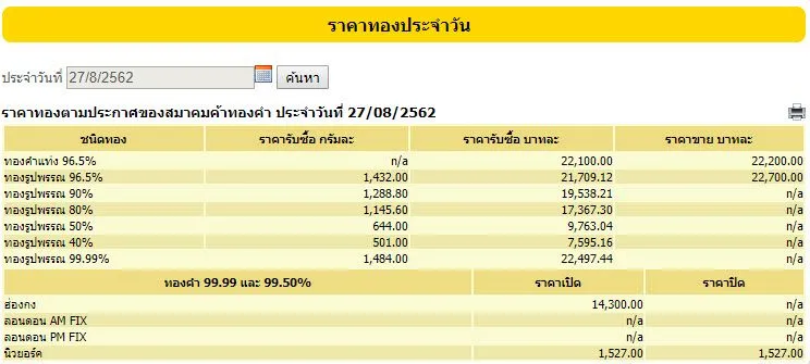ราคาทองวันนี้ ราคาทองคำ ประจำวันอังคาร 27 สิงหาคม 2562 เวลา 13.05 น. (ครั้งที่ 2)