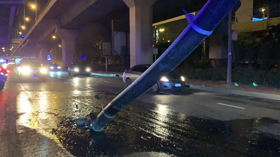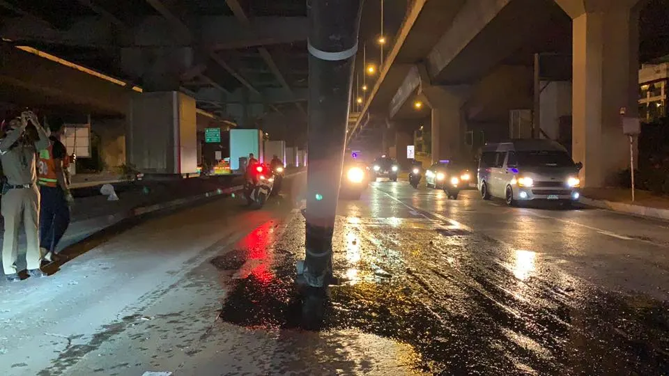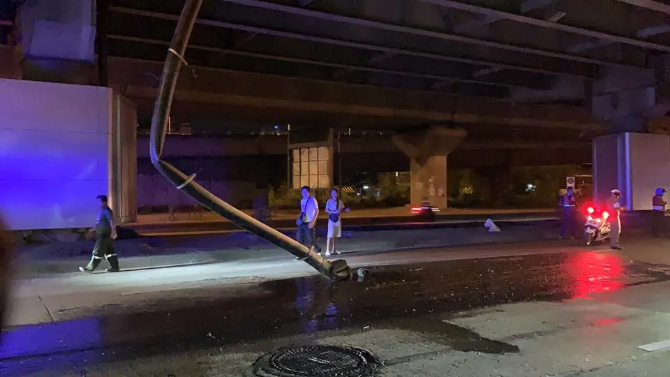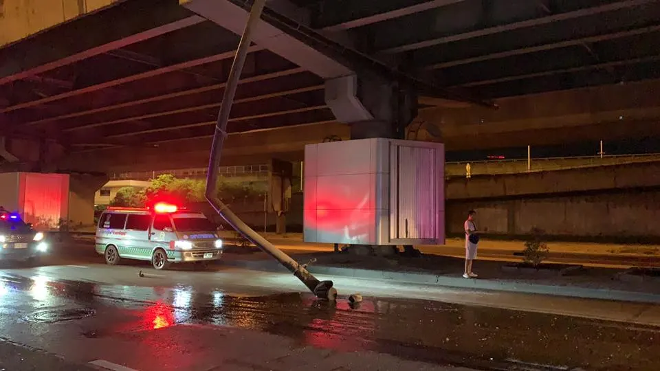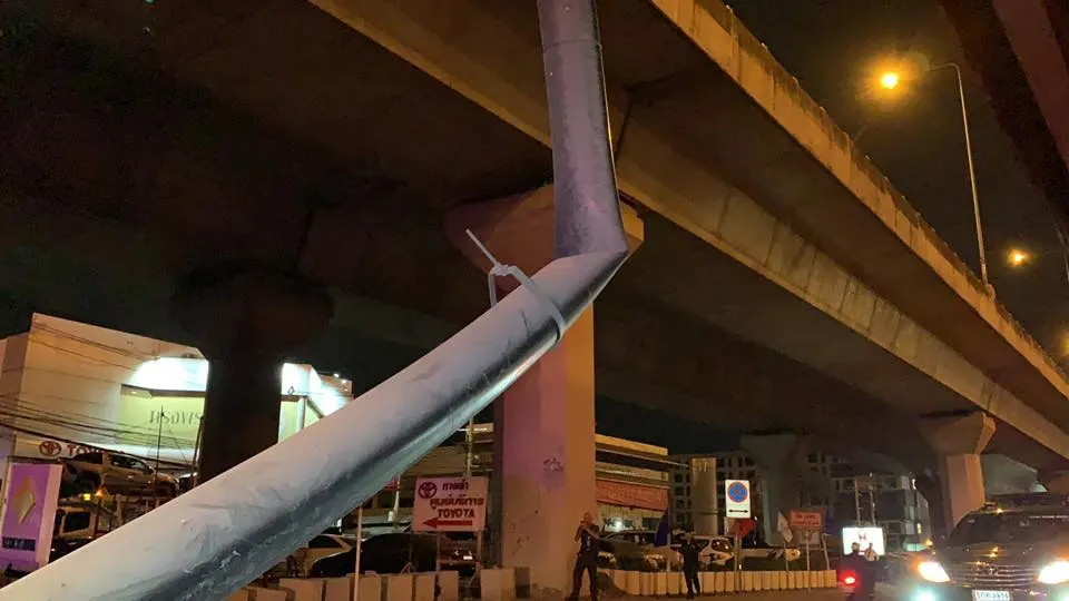 ระทึก! ท่อระบายน้ำบนทางยกระดับพระราม9 ขาดตกลงมาขวางถนนเมื่อกลางดึกที่ผ่านมา