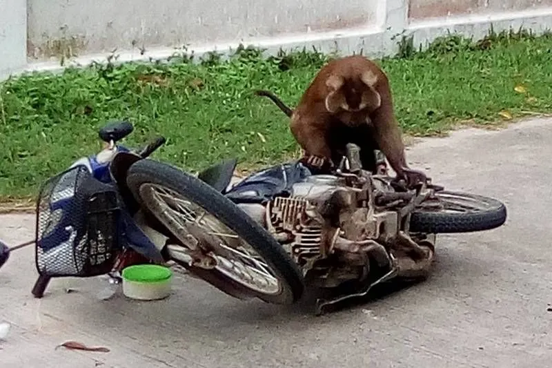 เมื่อวันที่ 27ส.ค. เจ้าหน้าที่หน่วยกู้ภัยใต้เต็กตึ้ง เขต อ.สิชล จ.นครศรีธรรมราชได้รับแจ้งขอความช่วยเหลือมีคนถูกลิงกัดได้รับบาดเจ็บ บริเวณถนนซอยหน้าบ้านน.ส. พิมพ์ภัทรา วิชัยกุล ส.ส.เขต 8 พรรคประชาธิปัตย์ ต.ทุ่งปรัง อ.สิชล จึงเดินทางไปตรวจสอบ ที่เกิดเหตุพบรถจยย. ซูซูกิ สีน้ำเงิน ทะเบียน ขขธ-607 นครศรีธรรมราช ล้มอยู่กลางถนน โดยมีลิงกัง เพศผู้ ตัวใหญ่ท่าทางดุร้ายยืนอยู่บนรถ จยย.และจ้องหน้านายสมพงษ์ ศรีใหม่ 52 ปี อยู่บ้านเลขที่43 หมู่8 ต.ทุ่งปรัง อ.สิชล จ.นครศรีธรรมราช เจ้าของลิง อย่างไม่พอใจ