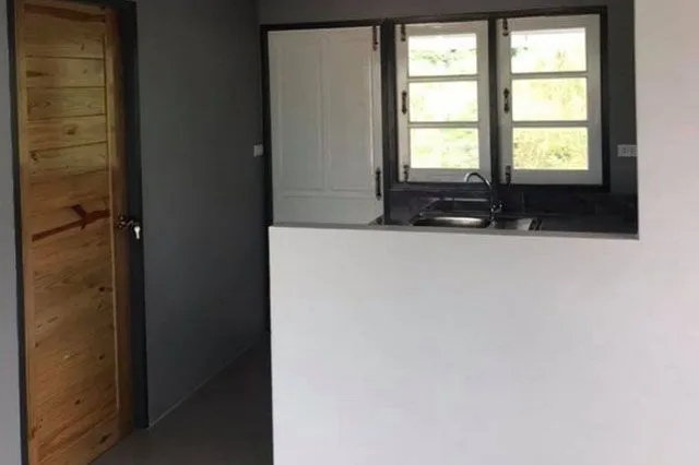 ห้องครัวขนาดพอเหมาะ มีการกั้นส่วนหนึ่งเพื่อไม่ให้กลิ่นมารบกวนเวลาทำกับข้าว พร้อมมีประตูและหน้าต่างสำหรับเปิดระบายอากาศ