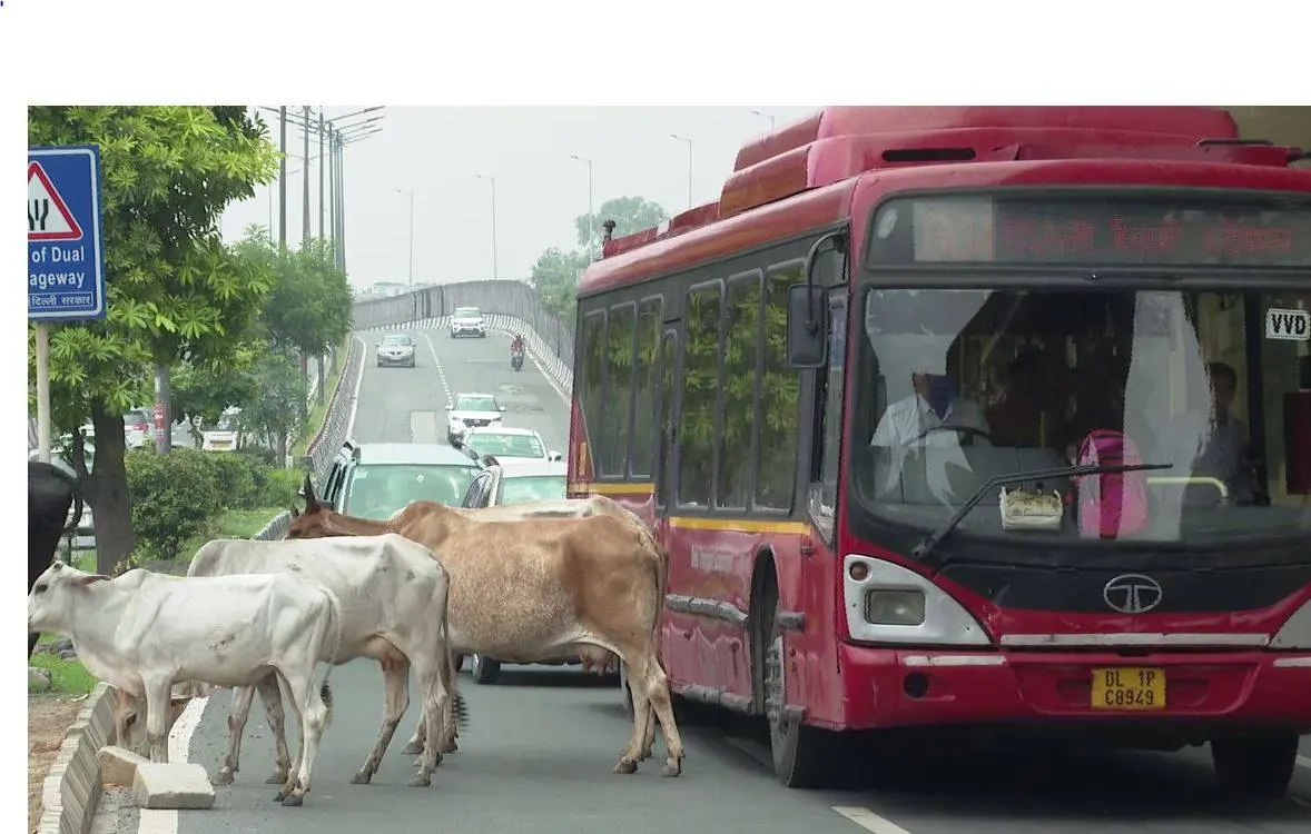 ในเมืองต่างๆ ของอินเดีย เป็นเรื่องสุดแสนจะธรรมดาที่จะเห็นสัตว์เดินเล่นไปมา โดยส่วนใหญ่แล้วจะเป็นวัวและควายนั่งอย่างสบายใจอยู่กลางถนน รวมถึงหลายพื้นที่ในกรุงนิวเดลี เมืองหลวงของอินเดีย
