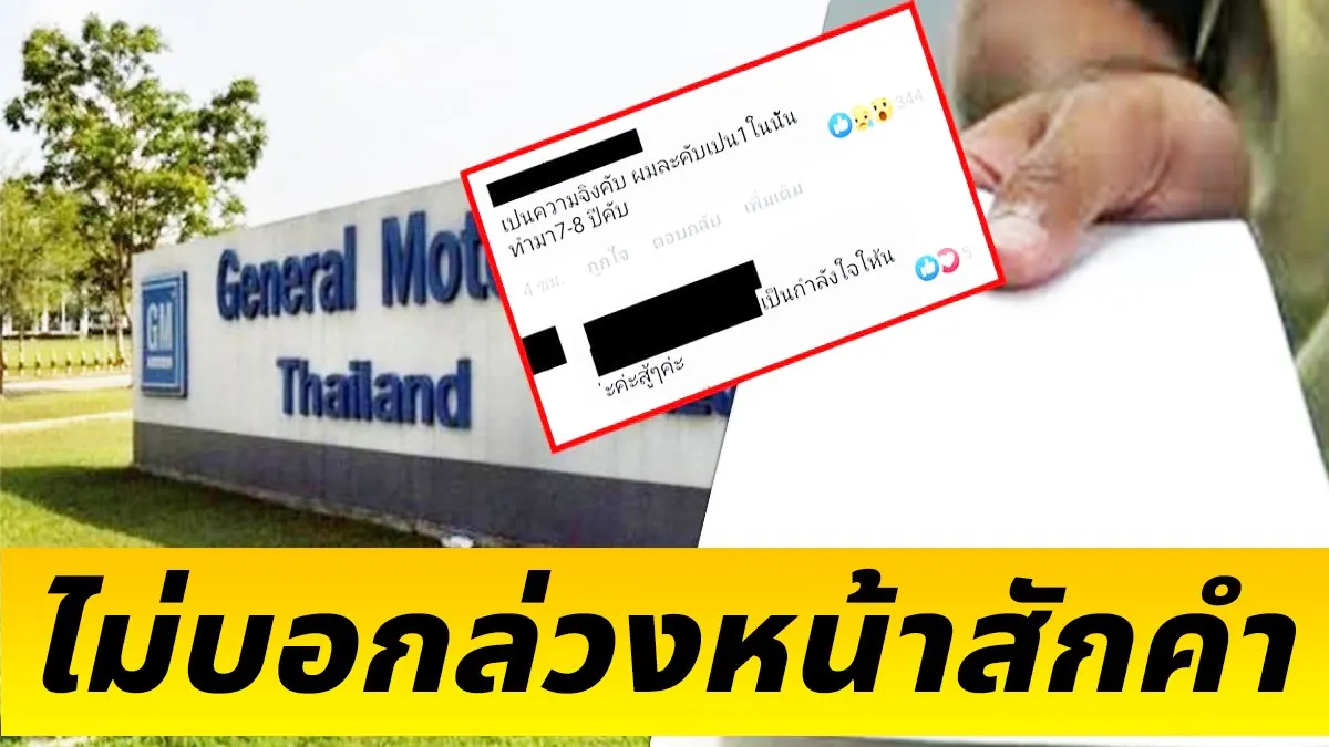 ได้รับรายงานมาว่าวันนี้ (28 ส.ค. 62) พนักงานของบริษัท GM General Motors thailand ตั้งอยู่นิคมอุตสาหกรรม อิสเทิร์นซีบอร์ด ระยอง พนักงานประจำและพนักงานชั่วคราวได้ถูกทางบริษัทเลิกจ้างแบบฟ้าผ่าประมาณ 300 กว่าคน สร้างความตกใจให้แก่ผู้คนในสังคมเป็นอย่างมาก ( คืบหน้าล่าสุดได้รับรายงานมาว่า ปลดมากกว่า 300 คน)