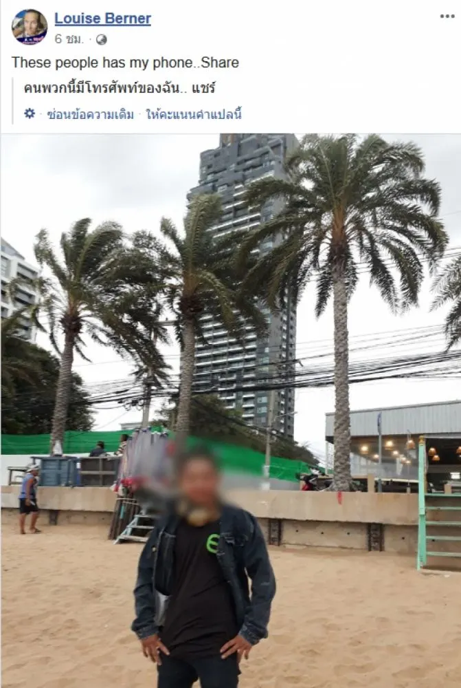 ฝรั่งโดนขโมยโทรศัพท์ที่พัทยา โจรดีใจได้ของใหม่ เซลฟี่รูปตัวเอง ส่งตรงถึงเจ้าของ
