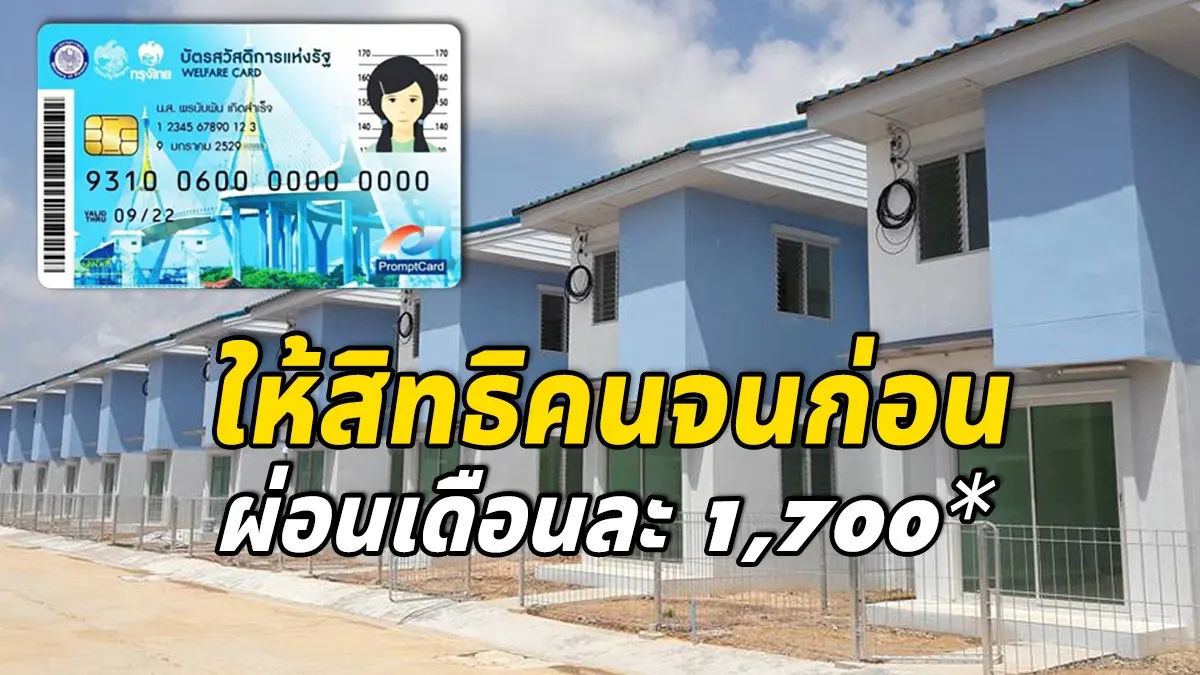 ผู้ถือบัตรคนจนมีเฮ!! รัฐบาลปล่อยกู้ซื้อบ้านดอกเบี้ยต่ำ ผ่อนเริ่มต้น 1,700฿ ให้สิทธิ์ผู้ถือบัตรก่อน