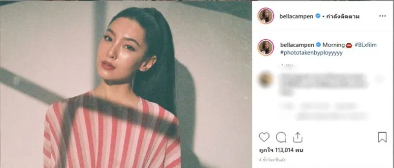 และเมื่อมีข่าวออกมาแบบนี้ แน่นอนว่าหลายคนก็ต้องไปส่องความเคลื่อนไหวของนางเอกสาวเบลล่าว่ามีความเคลื่อนไหวใดๆหรือไม่ ซึ่งก็พบว่านางเอกสาวมีความเคื่อนไหวล่าสุดเมื่อ 4 ชั่วโมงที่แล้ว โดยโพสต์ภาพผ่านอินสตาแกรมส่วนตัวชื่อ bellacampen ระบุว่า Morning #BLxfilm #phototakenbyployyyyy