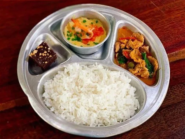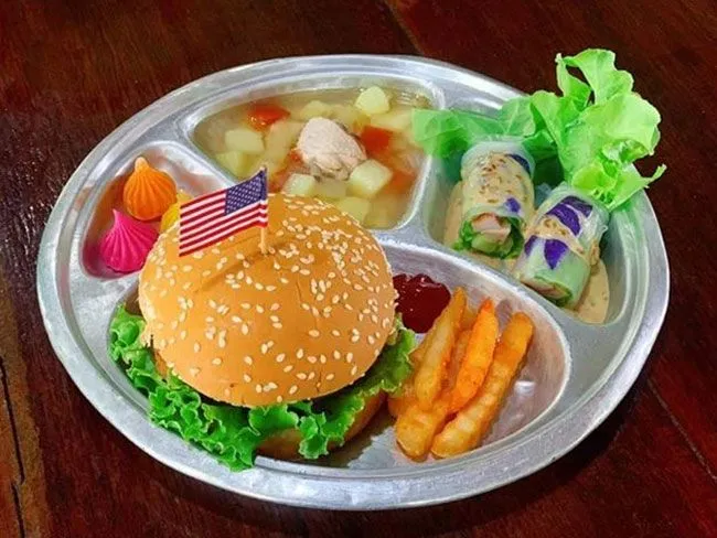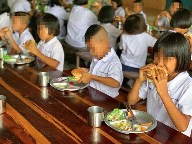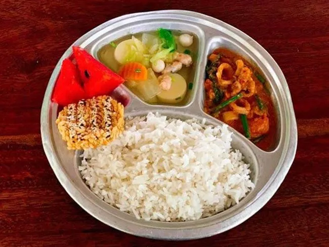 สำหรับโรงเรียนแห่งนี้เป็นโรงเรียนในสังกัดของรัฐบาล แต่ละวันจะได้ทานเมนูที่หลากหลาย เช่น ข้าวมันไก่, แฮมเบอร์เกอร์ หรือข้าวแกง และบนถาดอาหารจะมีอาหารใส่ให้ครบทุกช่อง