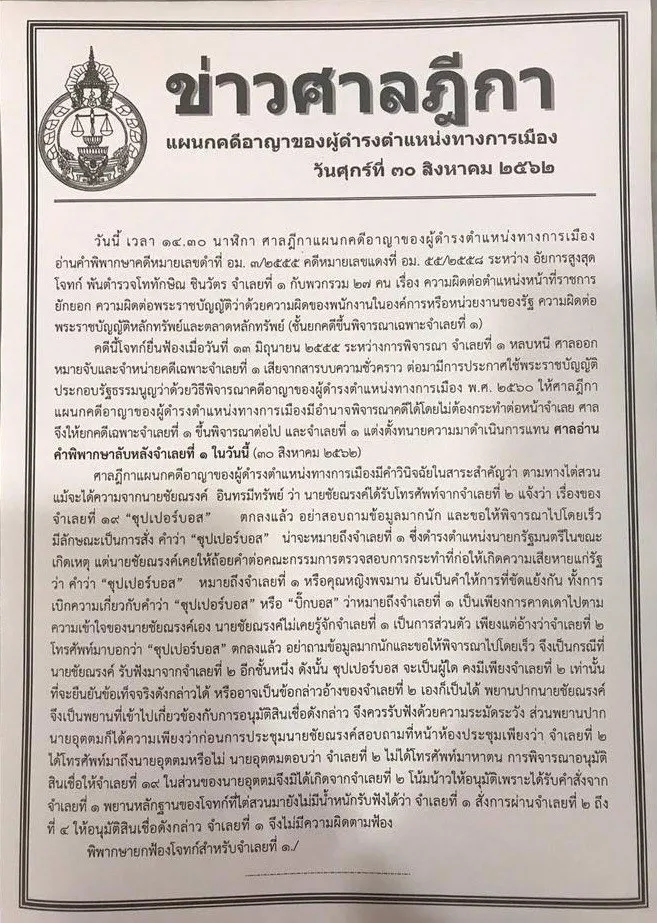 BREAKING: ศาลยกฟ้องทักษิณสั่งกรุงไทยปล่อยกู้กฤษฎามหานคร