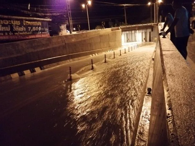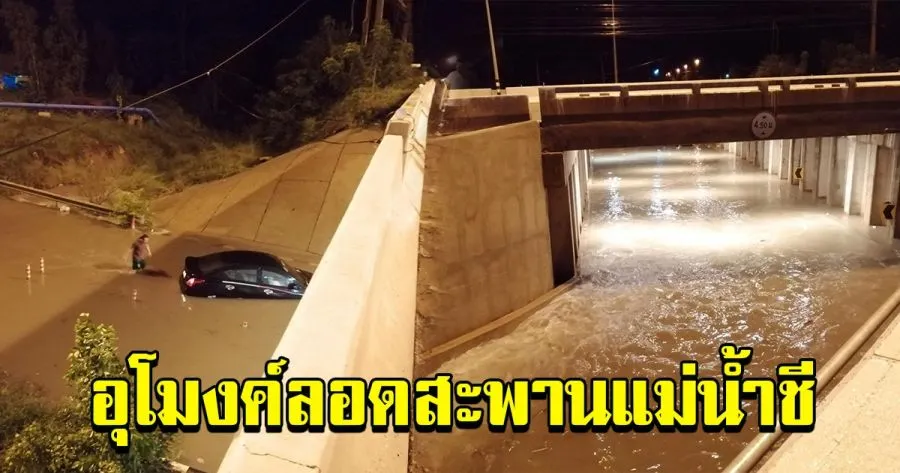 อุโมงค์ลอดสะพานแม่น้ำชี ปิดการจราจร ห้ามรถทุกชนิดผ่าน