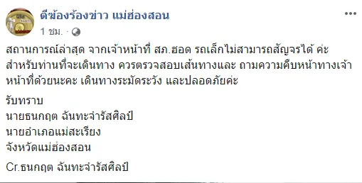 สถานการณ์ล่าสุดรถเล็กไม่สามารถผ่านเส้นทางได้แล้ว