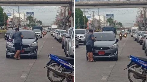 แบบนี้ก็ได้หรอ เมื่อหนุ่มจอดรถกลางถนน แล้วมาเช็ดรถป้ายแดงชิวๆ