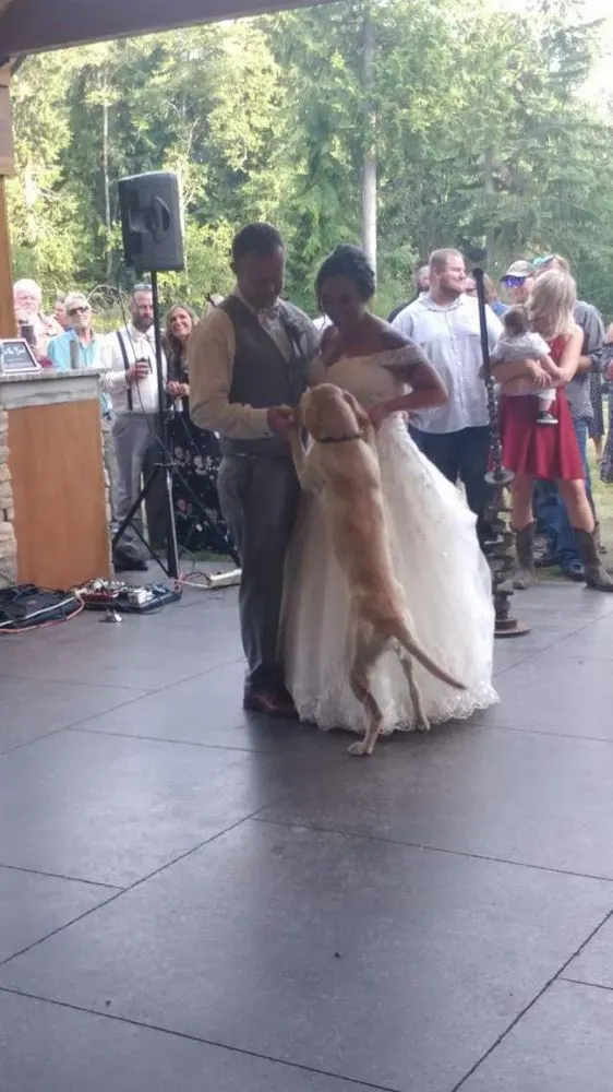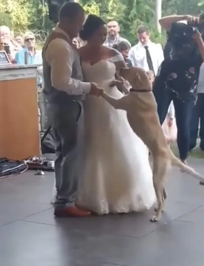 สุนัขร่วมเป็นพยานรักในวันแต่งงาน และไม่คาดคิดว่ามันจะเต้นรำกับบ่าวสาวเป็นครั้งแรกด้วย