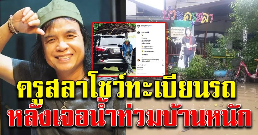 ครูสลา โชว์ป้ายทะเบียนรถ หลังน้ำท่วมบ้าน