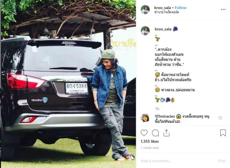 ล่าสุด (1 ก.ย.) ครูสลา เผยภาพขณะยืนท้ายรถยนต์ พร้อมกับข้อความว่า "
