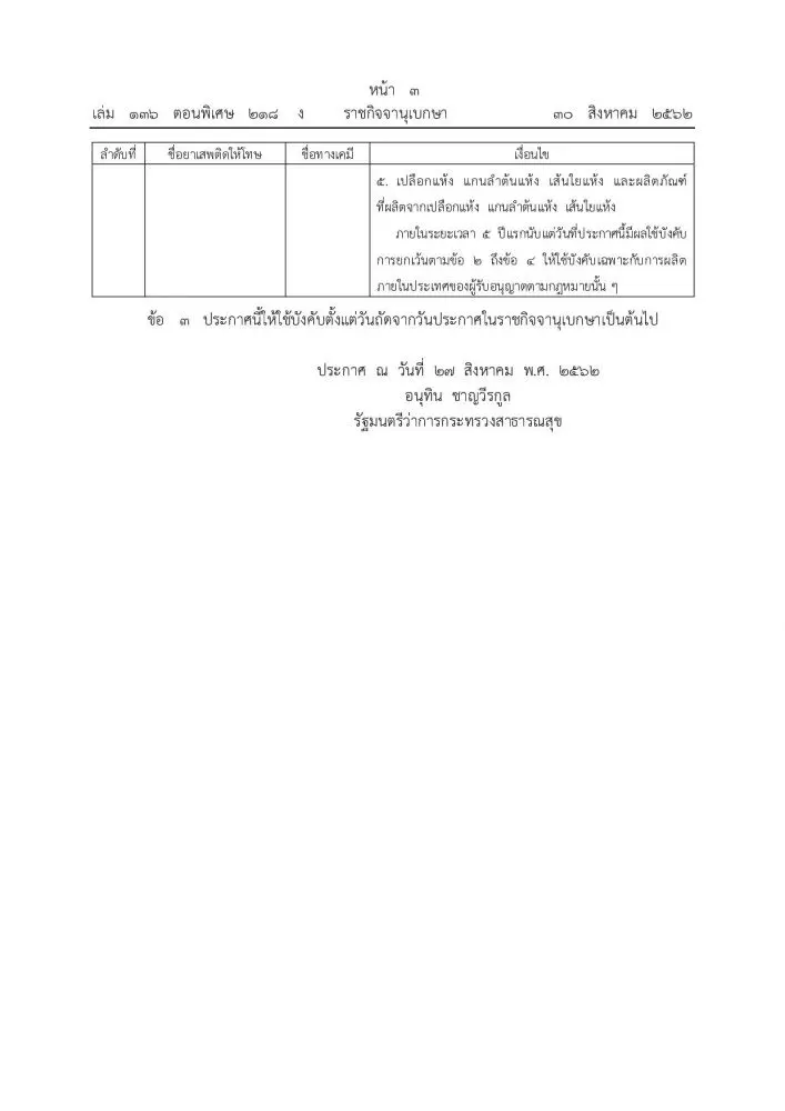 โดยออกมาทั้งหมด 3หน้า ยกเลิกออกจาก ยาเสพติดประเภท 5 โดยมีรายละเอียดดังต่อไปนี้