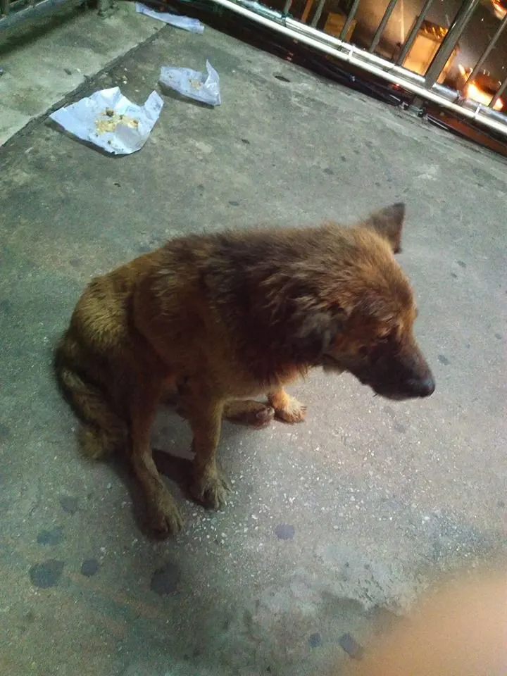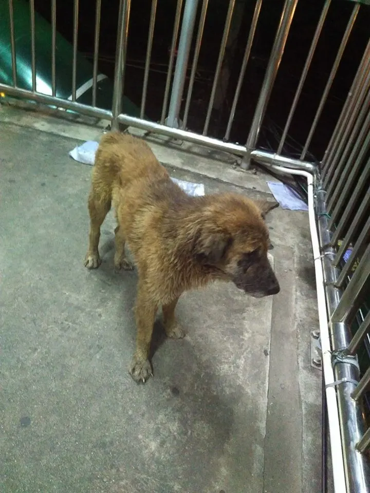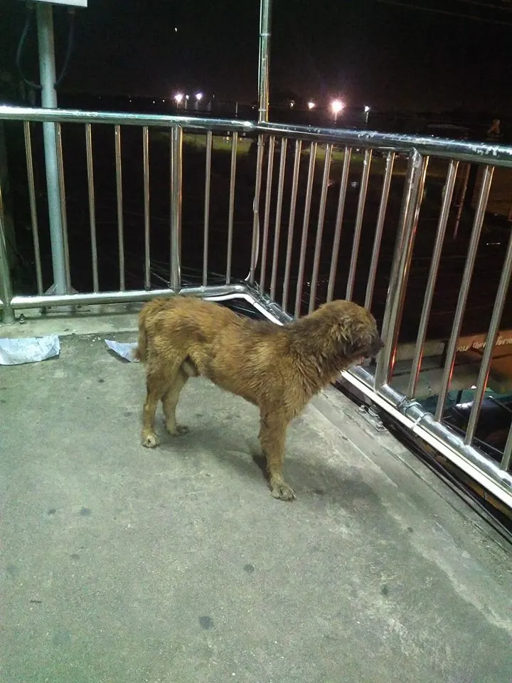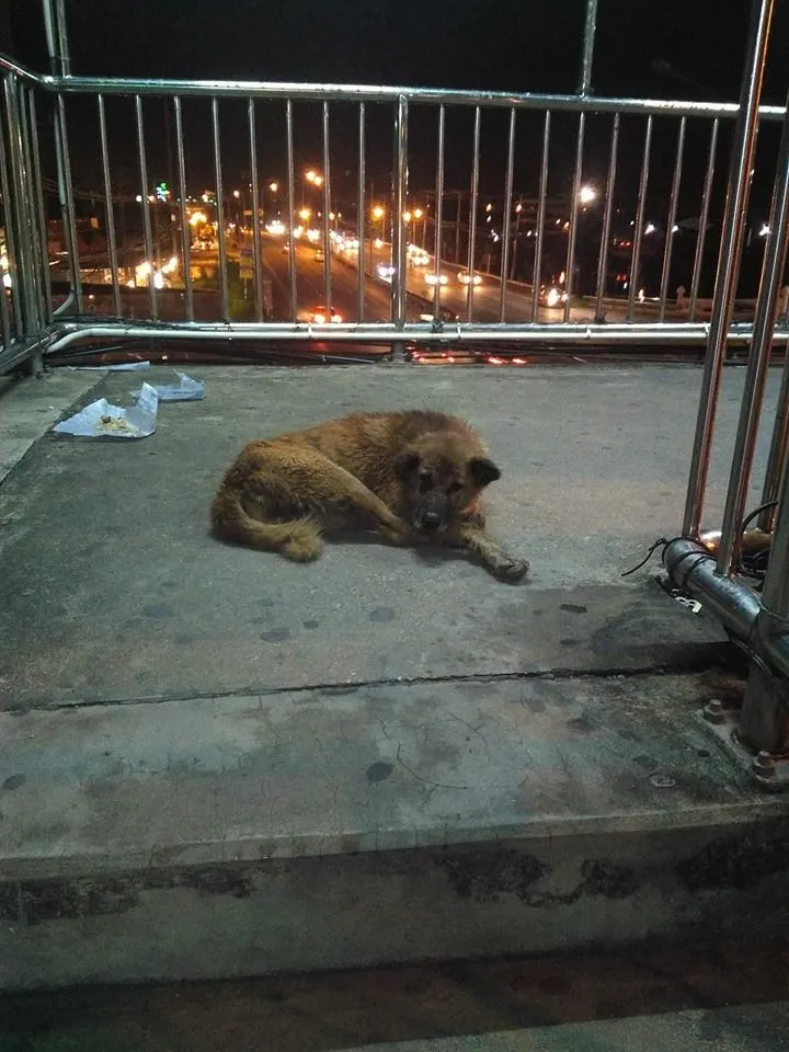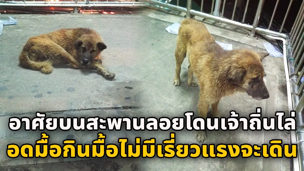 ถูกเอามาปล่อยทิ้งไว้บนสะพานลอย ตากแดดตากฝนไม่กล้าลงเพราะกลัวเจ้าถิ่น พูดรู้เรื่องขาหลังเจ็บหนัก