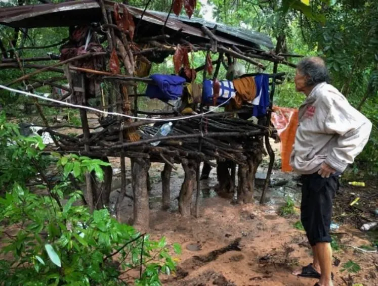 แต่พอเจ้าหน้าที่เดินทางไปถึง ถึงกับผงะ กับภาพที่เห็นเนื่องจากบ้านที่ว่า ไม่น่าจะเรียกว่าบ้านได้ เพราะสภาพเหมือนมีคนเอาไม้เก่าๆมามัดมาผูกกันให้เป็นลักษณะเหมือนเพิงพักเท่านั้น