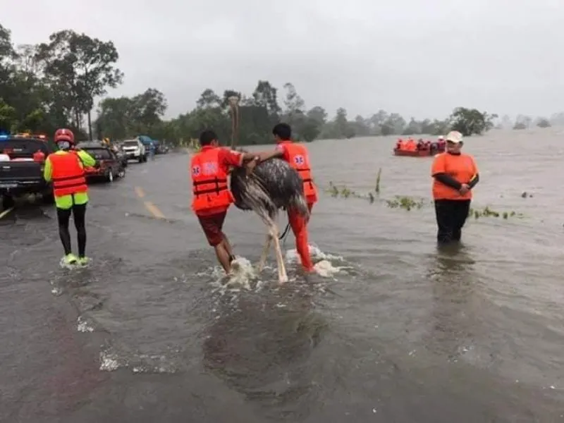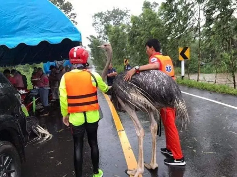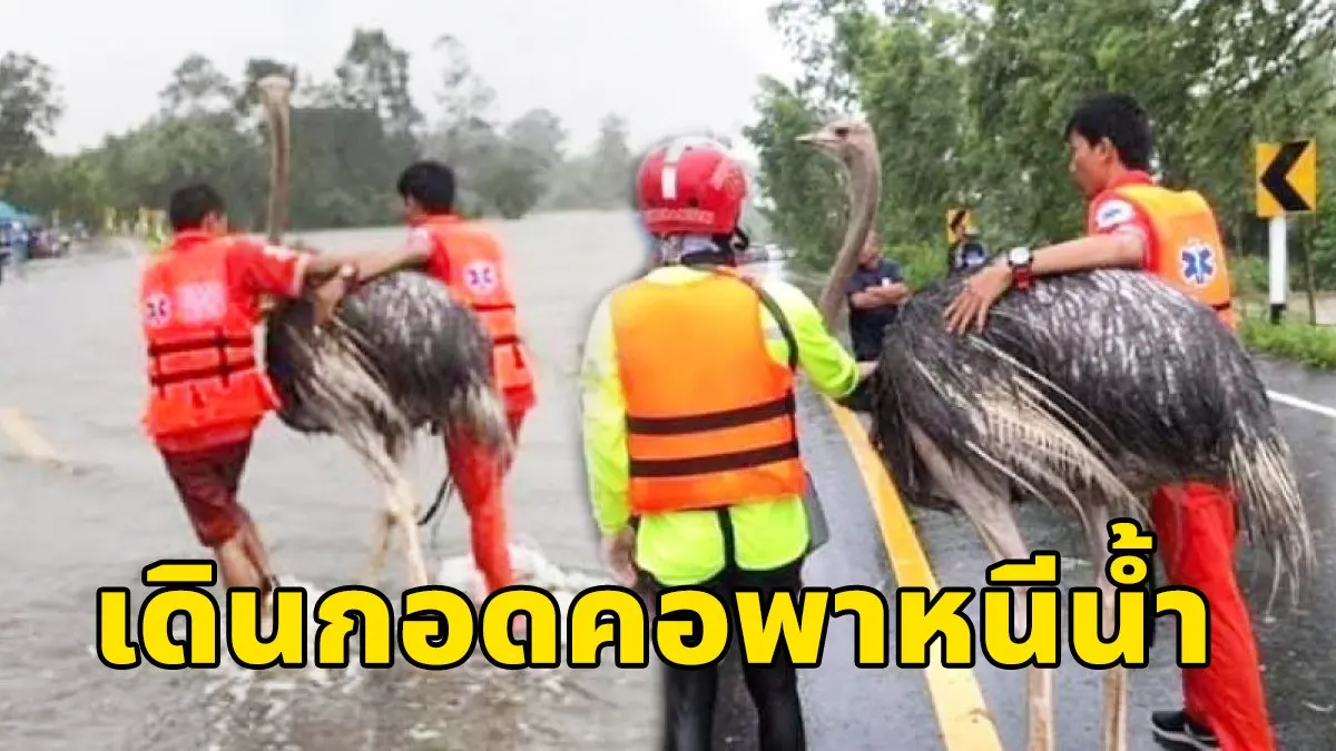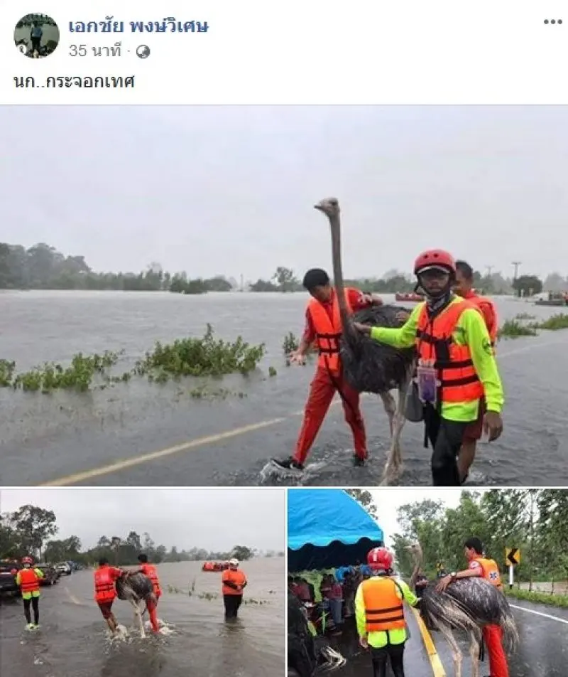 ภาพประทับใจ ของกู้ภัยที่ช่วยเหลือ นกกระจอกเทศ หนีน้ำ