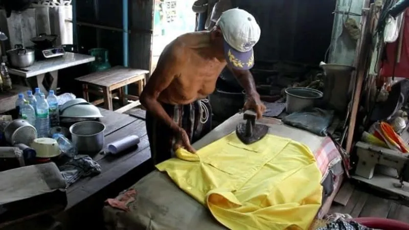 ลุง 87 ยึดอาชีพรีดผ้ามา 64 ปี กับเตารีดโบราณ ที่หาดูได้ยากแล้ว