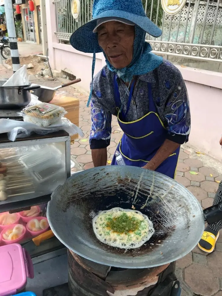 ช่วยอุดหนุน คุณยายยืนขาย ข้าวไข่เจียวชะอมน้ำพริก หน้าโรงเรียน