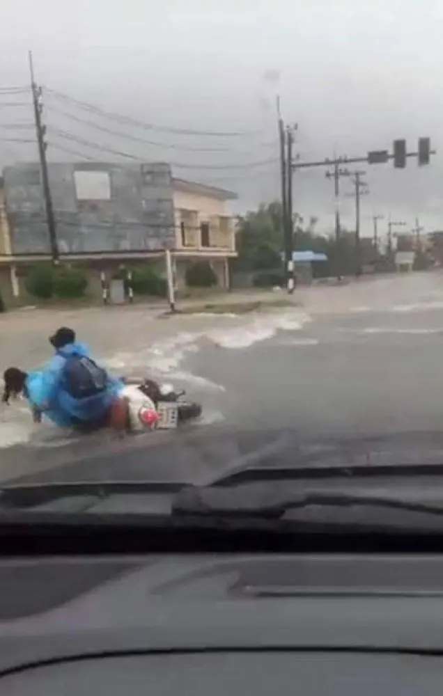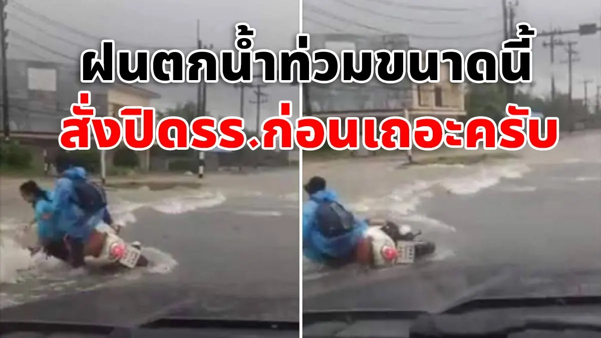 น้องนักเรียน ขี่รถฝ่าน้ำท่วม ล้มทุลักทุเล วอนโรงเรียนหยุดเถอะ แค่ไม่กี่วัน