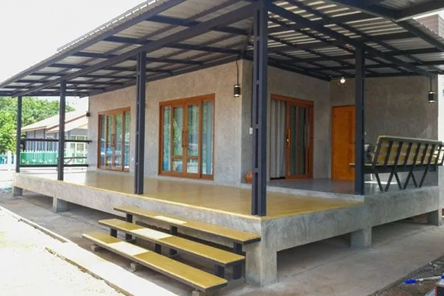 นับว่าเป็นบ้านสไตล์โมเดิร์นลอฟท์ ชั้นเดียวยกพื้นสูง ที่มีความสวยงามด้วยการออกแบบตกแต่งภายใน สรุปรายละเอียดของบ้าน ประกอบด้วยสองห้องนอน สองห้องน้ำ พร้อมระเบียงหน้าบ้าน ห้องโถงรับแขก ในราคาแปดสนเก้าหมื่นบาท หวังว่าจะพอเป็นแนวทาง ให้กับสมาชิกที่กำลังมองหาบ้านสไตล์นี้อยู่ หากสนใจสามารถติดต่อสอบถามข้อมูลเพิ่มเติม ได้ที่ช่องทาง Facebook ชื่อเพจ สถาปนิกไทบ้าน หรือทางหมายเลขโทรศัพท์ 088 331 7349 ออกแบบบ้านในสไตล์ที่เป็นคุณ รับออกแบบ และก่อสร้างอาคาร รับรีโนเวทบ้าน
