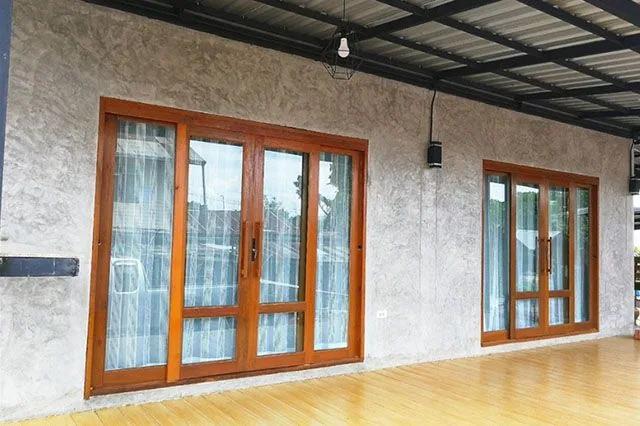 หน้าต่าง หน้าบ้านกรอบทำจากไม้ สวยมาก เข้ากับตัวบ้านเป็นอย่างดี