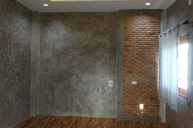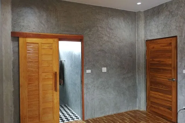 ผนังปูนลอฟท์ที่สวยงาม พร้อมประตูห้องภายในทำจากไม้