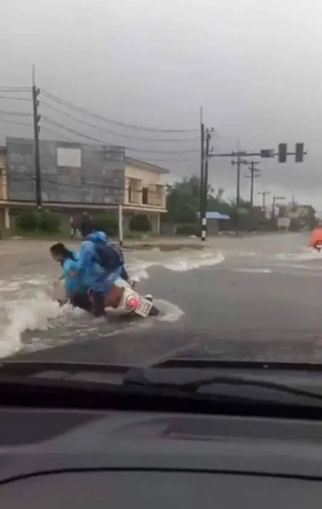 วอนโรงเรียนหยุดเถอะ น้องนักเรียนต้องขี่รถฝ่าน้ำท่วมอย่างทุลักทุเลกันขนาดนี้