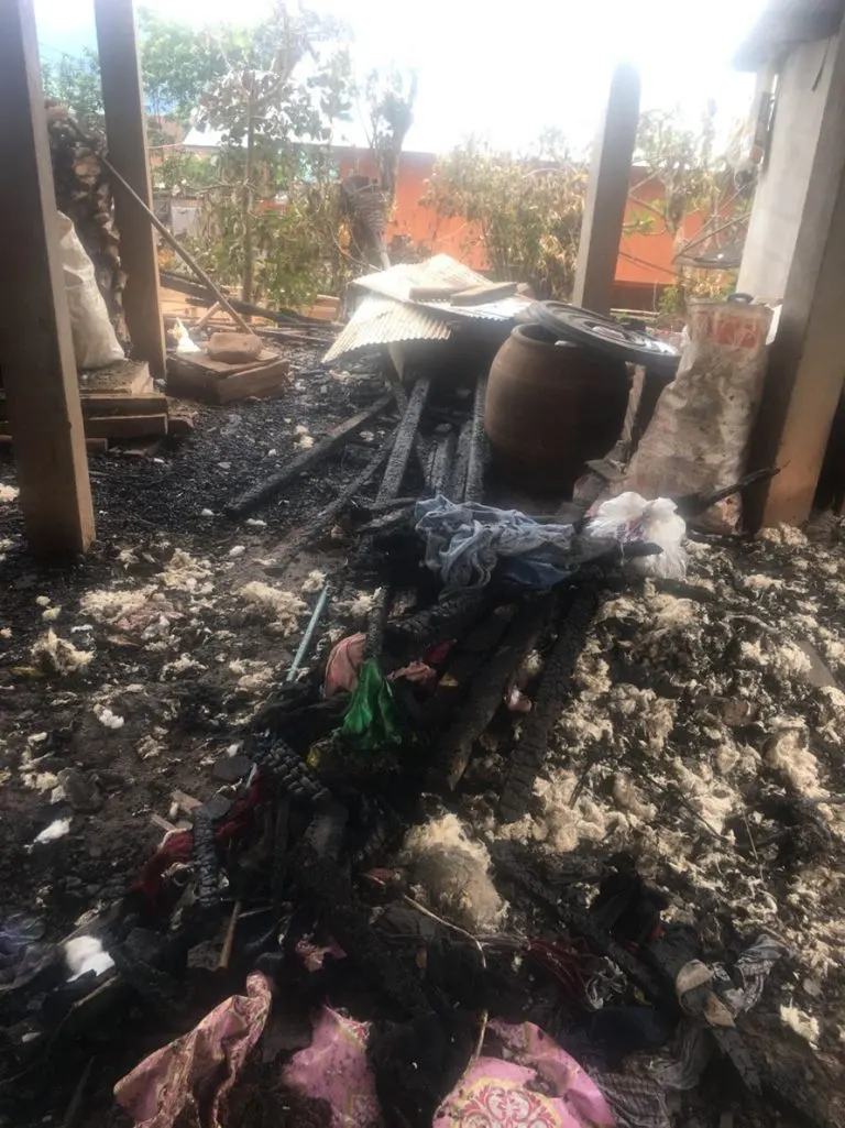 ทำให้บ้านและทรัพย์สินเสียหายทั้งหลังบ้านพึ่งสร้างได้5ปีลูกสาวคนโตค่อยส่งเงินมาสร้างบ้านคนส่งเงินยังไม่ทันได้มาอยู่บ้านก็เกิดเหตุไฟไหม้เสียก่อน เงินเก็บ 50,000 บาท ทอง 2 บาท 50 สตางค์ ก็ถูกไฟไหม้หมดไม่เหลือ เหลือแต่เสื้อผ้าคนละชุดที่ทุกคนใส่ติดตัว