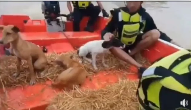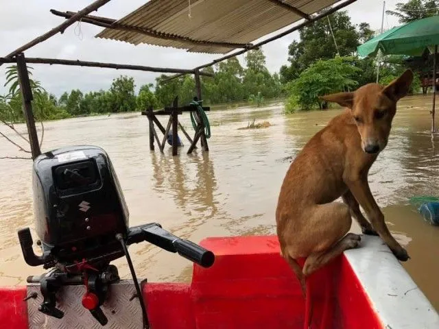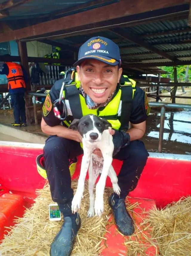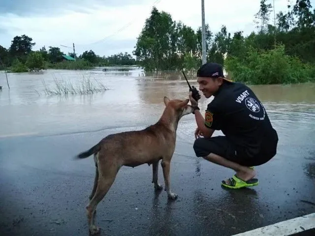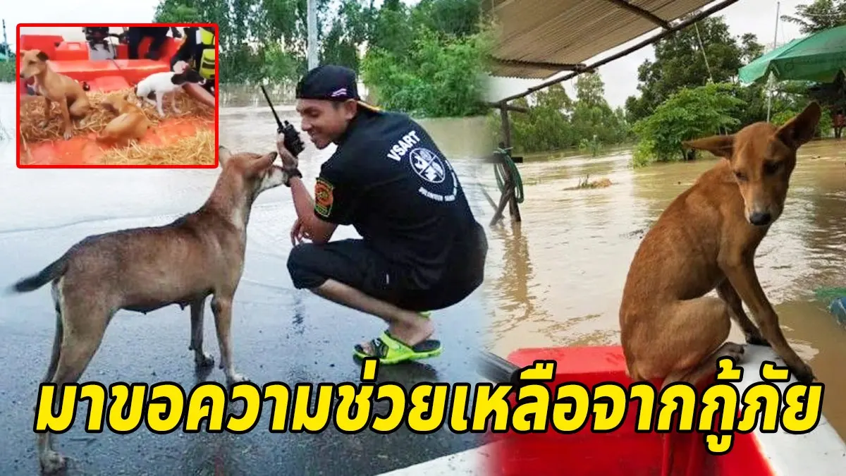 น้องหมา วิ่งมาหากู้ภัยหน้าตาตื่น ขณะปฏิบัติหน้าที่อยู่ในเขตน้ำท่วมสูง