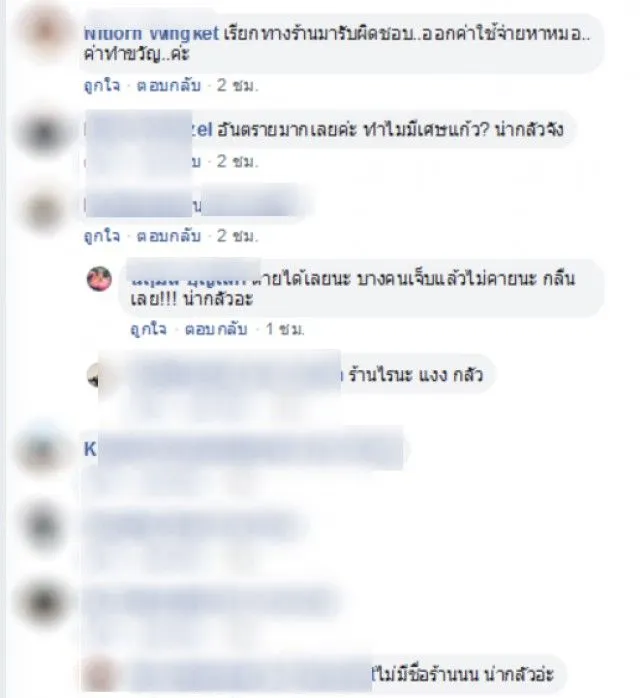 อันตรายมากเลยค่ะ ทำไมมีเศษแก้ว น่ากลัวจัง เฮ้ย น่ากลัวมาก ร้านอาหารต้องออกมารับผิดชอบนะค่ะ แบบนี้