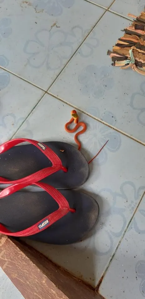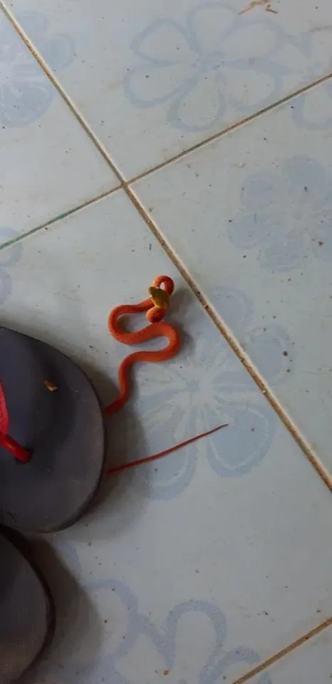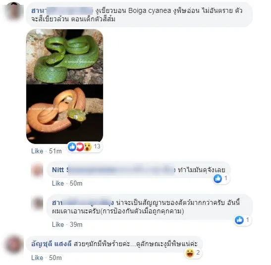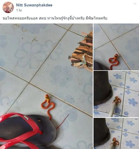 เป็นภาพที่น่ากลัวมากเลยทีเดียวค่ะ กับภาพของงูที่มีสีประหลาด ส่วนหัวมีสีเขียว ลำตัวมีสีส้ม ซึ่งผู้ใช้เฟซบุ๊กชื่อ Nitt Suwanphakdee ได้เผยภาพ พร้อมระบุว่า