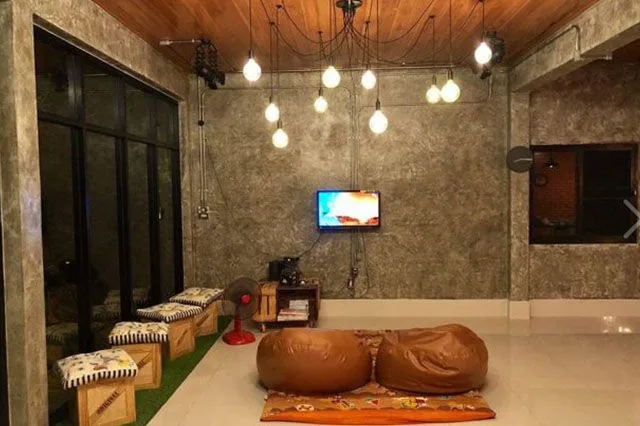 บรรยากาศในยามค่ำคืนของห้องรับแขก ไฟประดับสวยงาม