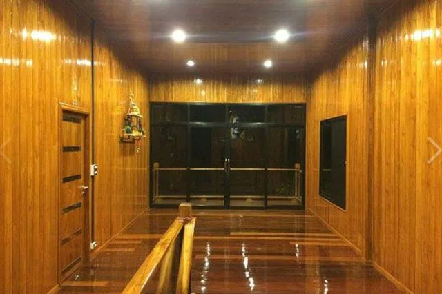 ในส่วนชั้นบน ทั้งผนังห้องและพื้นทำจากไม้ทั้งหมด กันห้องเป็นสัดส่วน ไม้สวยงาม ทาเคลือบเงาให้เห็นลายไม้ สวยงามมากยิ่งขึ้น