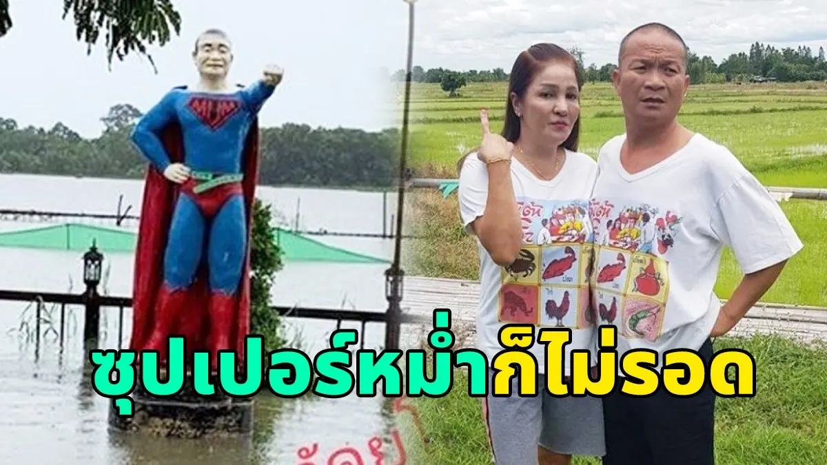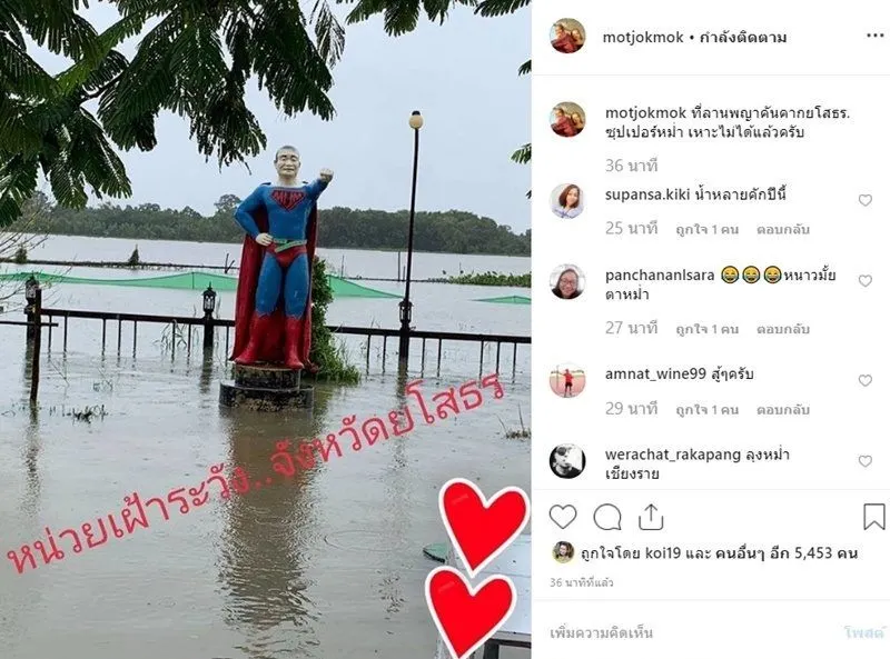 โดย มด หวานใจตลกดัง โพสต์สภาพน้ำท่วม ที่มีรูปปั้น ซูเปอร์หม่ำ ถูกน้ำล้อมรอบ พร้อมแคปชั่นว่า ที่ลานพญาคันคากยโสธร ซุปเปอร์หม่ำ เหาะไม่ได้แล้วครับ