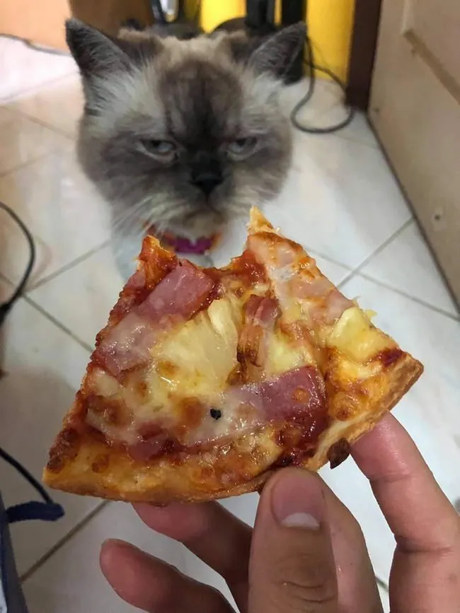 พิซซ่า น่าจะไม่ค่อยชอบนะหน้าบึ้งเชียว