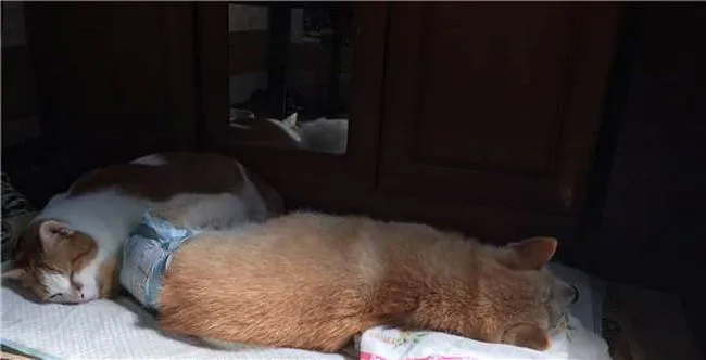 เหมียวอวบยอมให้หมาแก่คู่กัดเข้ามานอนข้างๆ เพราะรู้ว่าร่างกายไม่เหมือนเดิมอีกแล้ว