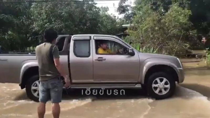 เข้าไปเตือนกระบะอย่าขับเร็วเพราะน้ำท่วม ตอบงี้ ก็ดังดิ