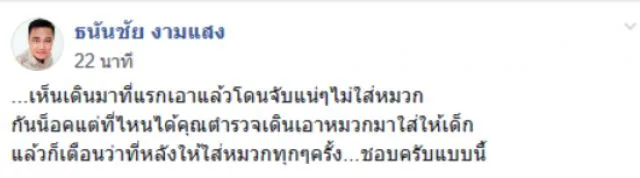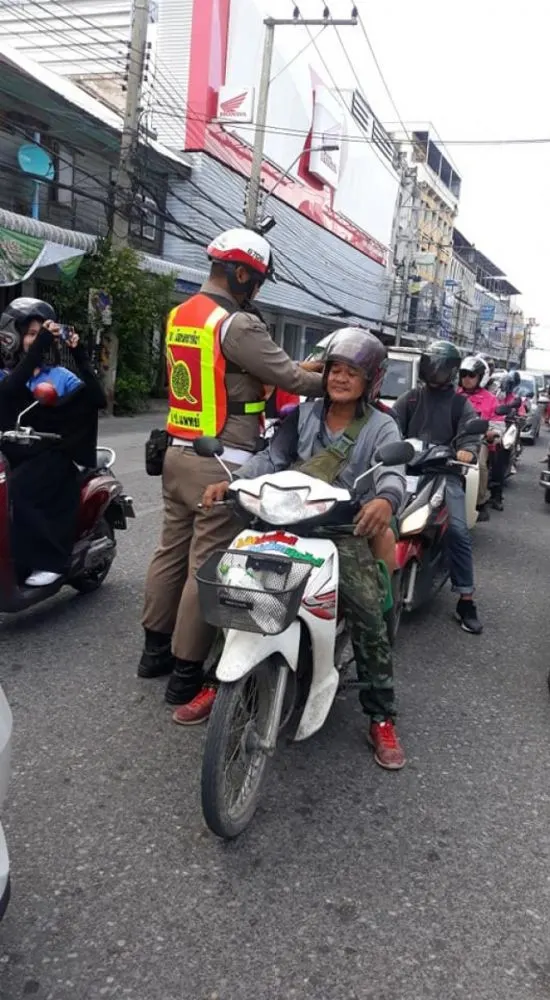 วันนี้เรามีเรื่องราวดีๆมานำเสนอ เป็นเรื่องราวของนายตำรวจท่านหนึ่งเดินเข้าไปหาชายหนุ่มที่กำลังกลับจากไปรับลูกที่โรงเรียน เมื่อวันที่ 6 ก.ย.มีผู้ใช้เฟสบุ๊ครายหนึ่งใช้ชื่อว่า ธนันชัย งามแสง ได้โพสต์ข้อความระบุว่า เห็นเดินมาที่แรก เอาแล้วโดน แน่ๆ ไม่ใส่หมวก แต่ที่ไหนได้คุณตำรวจเดินเอาหมวกมาใส่ให้ลูกสาว แล้วก็เตือนว่าที่หลังให้ใส่หมวกทุกๆครั้ง ชอบครับแบบนี้