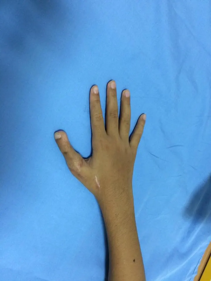 “ดีเลยครับถ้า อจ.จะมาช่วยผ่าตัดให้เด็ก ผมจะเตรียมห้องผ่าตัดให้ครับ” หลังจากนั้นแผนการผ่าตัดก็ถูกกำหนดขึ้นที่ รพ.ที่เด็ก admit อยู่ โดยได้รับการประสานงานเป็นอย่างดี ให้ผมเข้าไปช่วยผ่าตัดให้เด็กได้รับการผ่าตัดสร้างนิ้วหัวแม่ ด้วยเทคนิคทางด้านจุลศัลยกรรม ย้ายนิ้วเท้า มาสร้างนิ้วหัวแม่มือผลการผ่าตัด เรียบร้อยดี เป็นที่น่าพอใจ เป็นการร่วมมือที่ดี