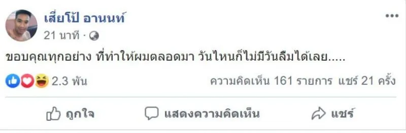 ถึงอย่างไรตอนนั้นถึงตอนนี้ก็ผ่านมานานกว่า 2 เดือนแล้ว ล่าสุดนี้ เสี่ย โป้อานนท์ ก็ได้ออกมาเป็นที่เรียบร้อยแล้วพร้อมเผยแคปชั่นน่าสนใจที่ว่าขอบคุณทุกอย่างที่ทำให้ผมตลอดเวลาวันไหนก็ไม่เคยลืมเลยโดยแคปชั่นแรกที่เจ้าตัวนั้นโพสต์หลังออกมาจากเรือนจำ