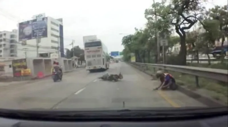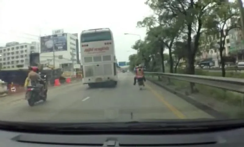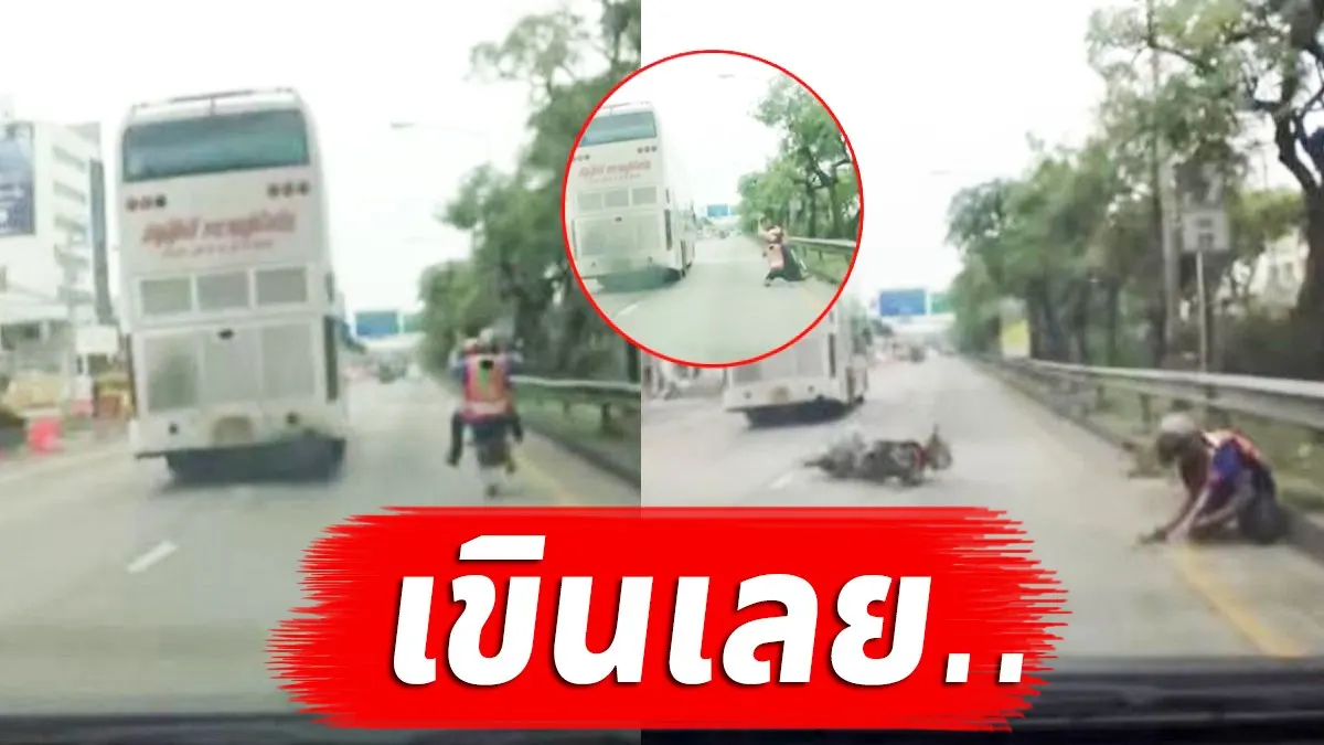 อย่างไรก็ตาม มอเตอร์ไซค์รับจ้างคันดังกล่าวน่าจะโมโหที่รถบัสปล่อยคันดำ จึงขี่ยกล้อกลางถนน แต่พลาดท่าล้มคว่ำกลิ้งไม่เป็นท่า โชคดีที่ไม่ได้รับบาดเจ็บมาก แต่รถจักรยายนต์ก็น่าจะได้รับความเสียหายพอสมควร