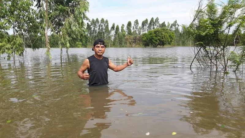 บ้านผู้ใหญ่หำก็ไม่รอด บ้านท่าเจริญ ม.11 ต.ท่าลาด อ.วารินชำราบ จ.อุบลฯ น้ำก็ท่วมสูงเช่นเดียวกัน ผู้ใหญ่หำบอกว่า พืชผลทางการเกษตรปีนี้เสียหายหมด ถึงน้ำจะท่วมสูงแค่ไหน แต่ผู้ใหญ่เฉลิมพล ผู้ใหญ่บ้านแหนบทองคำ ปี 2562 ก็ไม่เคยได้อยู่บ้าน ออกลุยน้ำไปเยี่ยมให้กำลังใจลูกบ้านตั้งแต่เช้ายันเย็น
