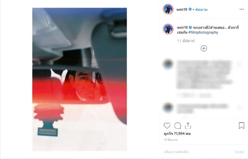 ล่าสุดดราม่ายังไม่ทันเคลียร์ ชาวเน็ตไปเจอหลักฐานเด็ดอีก สงสัยทำให้เกิดดราม่าชุดใหญ่ถล่ม ชิงชิง ตอนนี้หรือไม่ พบว่า หนุ่มเวียร์ เคยโพสต์ภาพ และแคปชั่นว่า “ทุกอย่างมี2ด้านเสมอ… ตัวเราก็เช่นกัน #filmphotography”