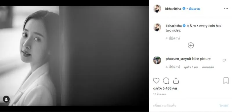 ขณะที่ ชิงชิง ก็โพสต์ภาพและแคปชั่นเดียวกันกับ เวียร์ แต่เป็นภาษาอังกฤษว่า “b & w • every coin has two sides.” ความหมายเดียวกับแคปชั่นของ เวียร์ เช่นกัน ต่างกันที่เวลา ทำเอาชาวเน็ตสงสัย ไม่รู้ว่าทั้งคู่โพสต์เหมือนกันแบบบังเอิญหรือตั้งใจ แต่ตอนนี้มีชาวเน็ตเริ่มเข้าไปดราม่าในโพสต์ดังกล่าวของทั้งคู่แล้ว