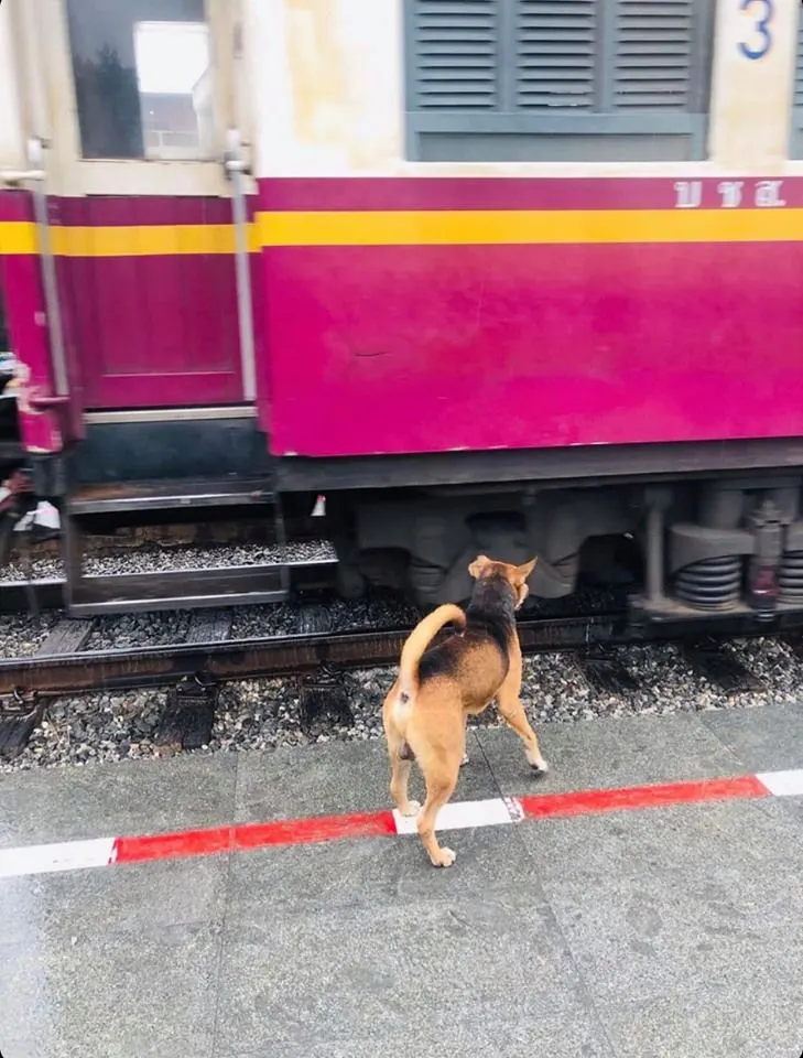 โดยเจ้าของโพสต์ได้ระบุข้อความเอาไว้ว่า นี่นี่ มีเหตุการณ์ประทับใจมาเล่าให้ฟัง เพื่อนเราไปเที่ยว ตรงสถานีรถไฟแม่น้ำแคว ที่กาญจนบุรีมา แล้วสังเกตุเห็นหมาตัวหนึ่ง ที่สถานีนี้ คือ งง หมาตัวนี้เขาวิ่งไปวิ่งมากันทำไม …? เลยสังเกตกันสักพักหนึ่ง จึงรู้เหตุผลเขาละว่าทำไม