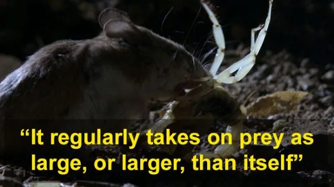 หนูเหล่านี้กินสัตว์มากมายรวมถึงแมงป่อง! เราไม่รู้ว่าเพื่อนๆคิดยังไง แต่เราคิดว่าสัตว์ตัวเล็กตัวนี้เจ๋งมากและน่ากลัวมากเช่นกัน และนี่คือเรื่องราวของหนูตักแตนที่ดุมากและแมงป่อง มันเป็นเจ้าหนูที่หอนให้กับดวงจันทร์ ที่มีความกระหายโดยไม่มีเงื่อนไข! นี่อย่างกับโปสเตอร์ภาพยนตร์เลยทีเดียว